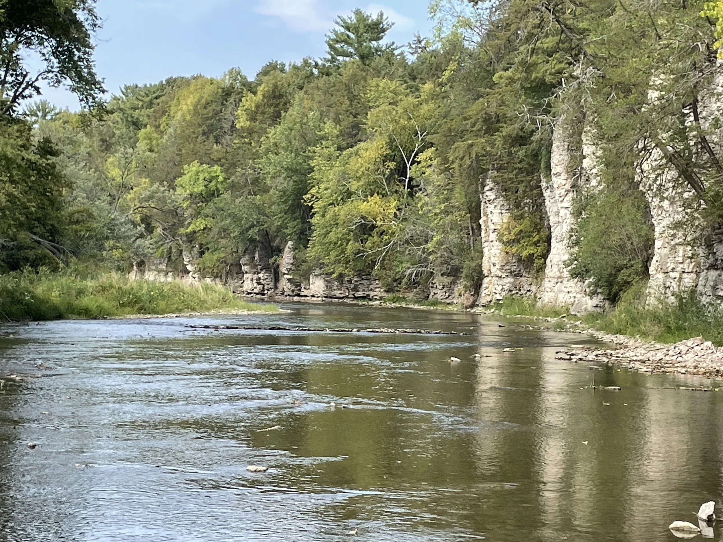 We suggest you wear water shoes, as the river bed consists of gravel, stone chips, and limestone. You can capture the scenic beauty on your waterproof device (or your device in a waterproof pouch), as the river winds through farmland prairies then changes to a river valley with limestone bluffs. Wildlife is abundant with white tail deer, wild turkeys, and bald eagles as the main attraction. But you'll also see mink, flat-back turtles, beavers, otters, and the like… and every so often a cow or two from a neighborhood ranch gettin' a drink of water and cooling off.